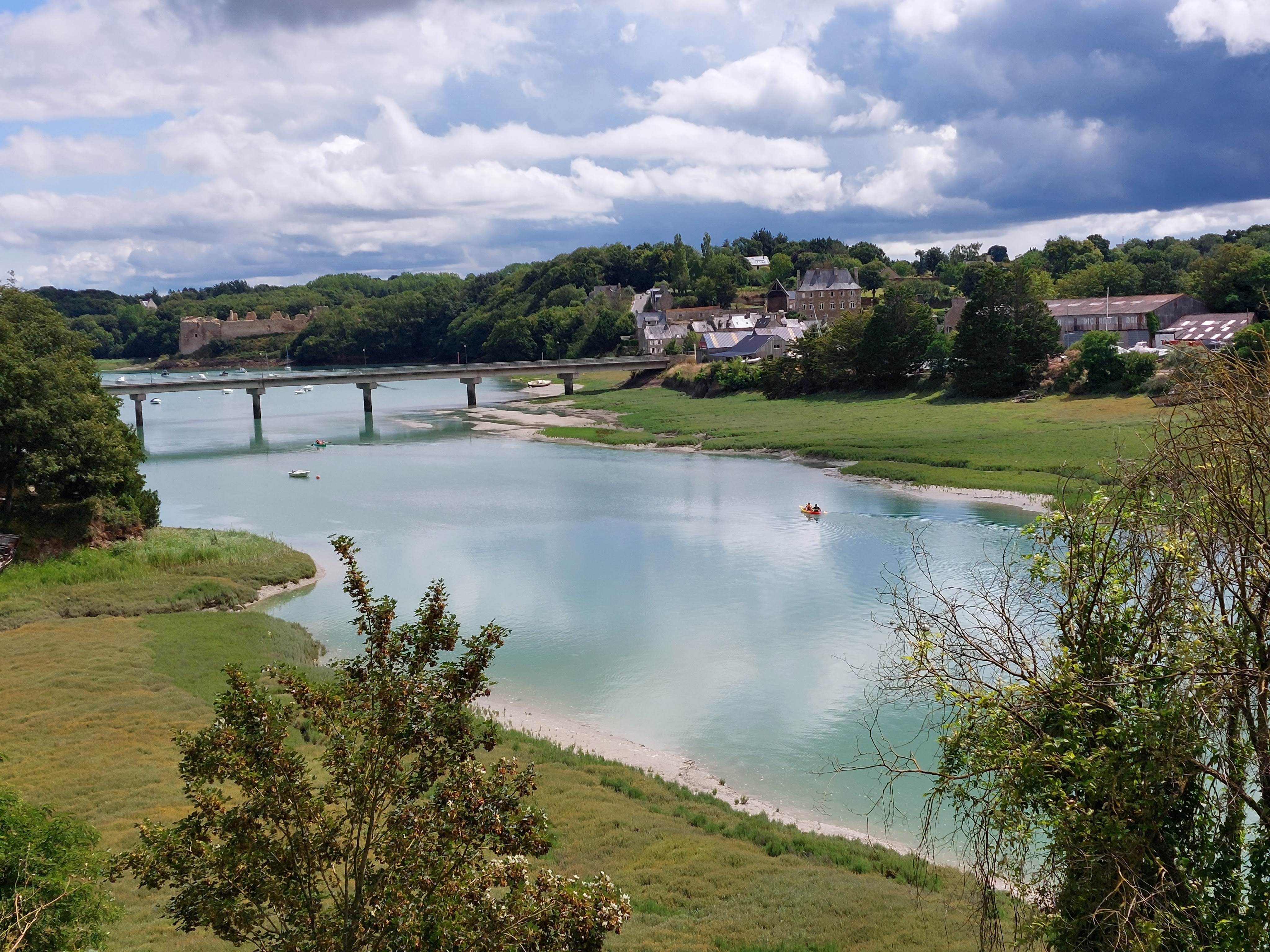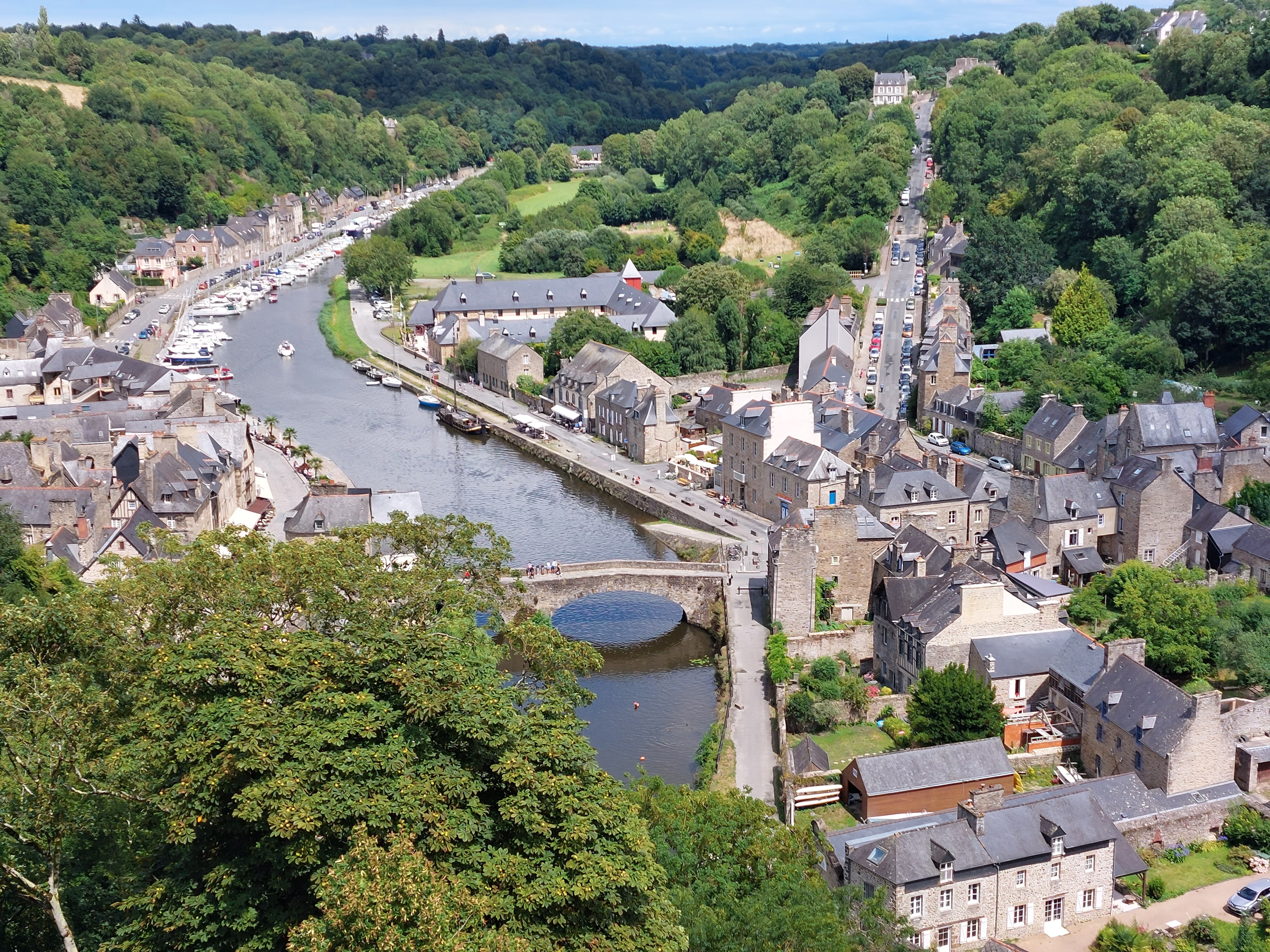 Journée plus cool que la veille avec comme objectif la visite de Dinan. Située sur la Rance, cette cité médiévale a gardé un charme fou et nous n’avons pas eu suffisamment de temps pour découvrir toutes les richesses de la ville. A noter les jardins de la basilique St Sauveur avec la vue sur le port et l’abbaye de Léhon située sur la voie cyclable à la sortie de Dinan. Nous empruntons la voie verte du canal d’Ille et Rance jusqu’à Trévérien avant de filer vers le nord pour gagner le château de la Motte Beaumanoir (XVème siècle) à Plesder notre chambre d’hôtes de ce soir.