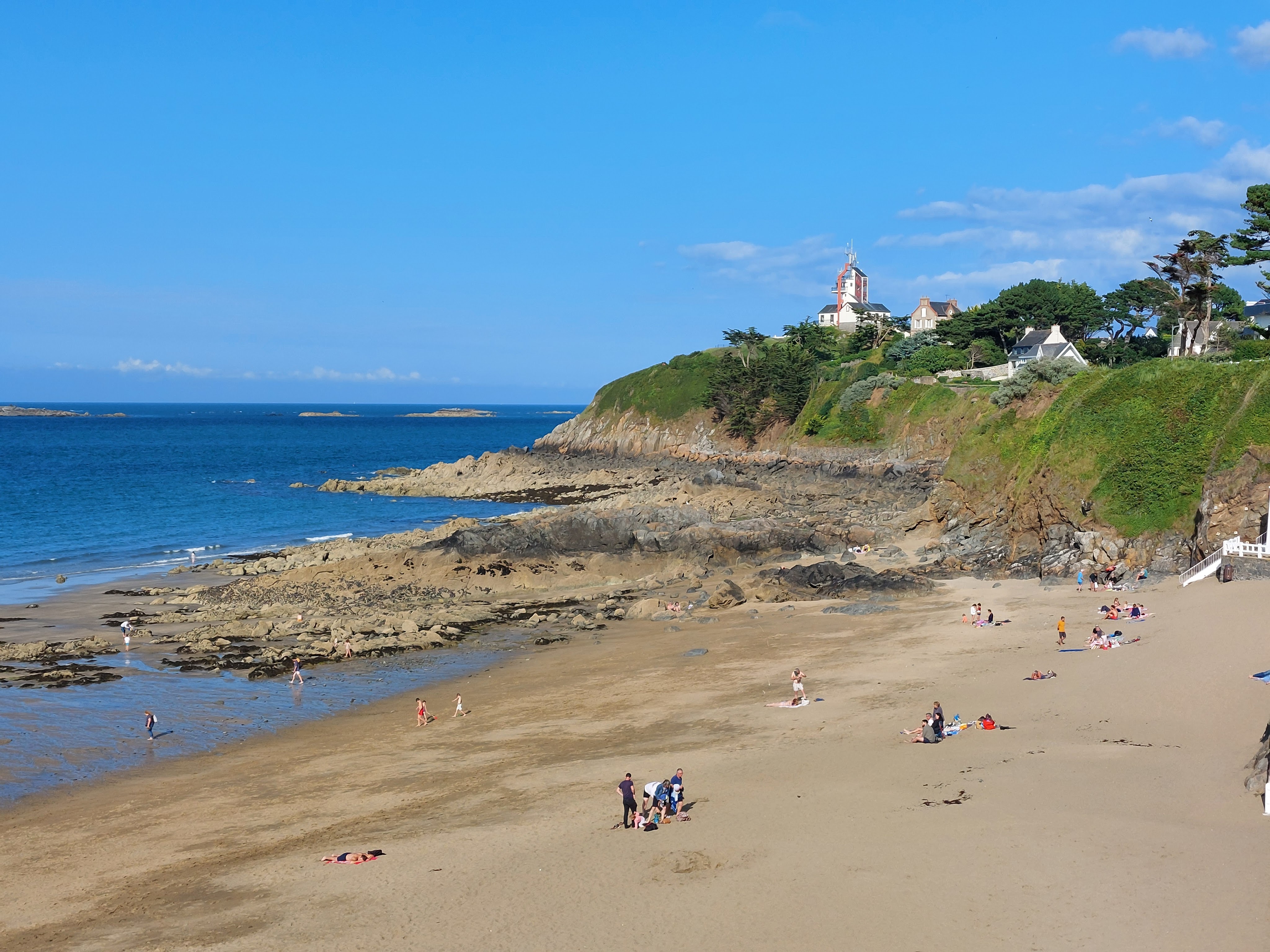Le ciel est dégagé ce matin et nous quittons notre sympathique hébergement (hôtel de France) situé à Pléneuf pour gagner la magnifique plage de Val André que nous longeons jusqu’à la Guette. Nous savourons à petit rythme ce moment magique. Nous poursuivons vers la réserve naturelle de l’anse d’Yffiniac . Nous entrons dans St Brieuc en quittant très furtivement l’itinéraire de la vélomaritime qui nous semble revenir sur nos pas. Nous attaquons la côte à plus de 15% qui nous oblige à mettre pied à terre et redescendons sur le port de St Brieuc situé à l’embouchure du Gouët. L’itinéraire se poursuit vers le nord-ouest, Plérin, Pordic, Binic et enfin St Quay que nous découvrons sous un soleil radieux. Malgré les températures automnales la plage est fréquentée et quelques téméraires nagent dans la piscine d’eau de mer.