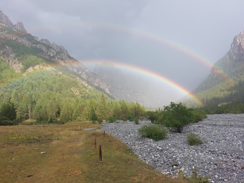 Nous faisons la pause déjeuner à côté d’une source en face la cabane des Houerts. Après la sieste, nous rechargeons les gourdes puis repartons. 100m sous le col, nous tombons nez à nez avec un troupeau de bouquetins (environ une trentaine), essentiellement des mâles peu farouches que nous photographions à loisir. C’est la récompense de la journée que nous évoquerons avec émotion le soir au refuge. Basse Rua n’est plus qu’à une heure de marche, et une averse s’abat violemment sur notre groupe. Malgré le soleil qui pointe à l’ouest, la pluie redouble, nous gratifiant de magnifiques arcs en ciel. Nous arrivons au refuge…à essorer. Lien vers parcours : https://www.alltrails.com/explore/recording/suuntoapp-trekking-2024-08-28t07-33-59z-009a551